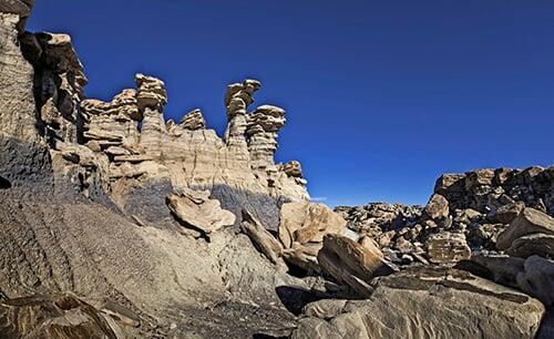 Very easy hike close to the cabin (approx 1.5 miles- 3 miles round trip). The Devil’s Playground is a strangely beautiful, highly eroded part of the park, worthy of exploration. To get to Devils Playground hike north west from the cabin and follow the Wildhorse Wash into the park. About one half mile north of the park boundary head west into the Devils Playground area. Approximate GPS coordinates: 35.044843° N, -109.8832705° W.